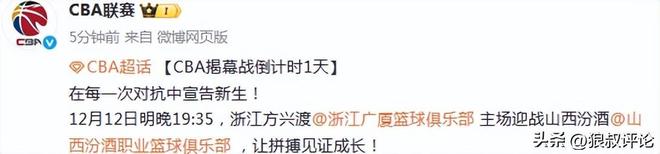 北京时间12月11日,根据CBA官方的公示,CBA揭幕战倒计时1天,12月12日明晚19:35,浙江方兴渡主场迎战山西汾酒,让拼搏见证成长。 但由于网络转播商尚未确定,球迷在评论区询问,到底在哪