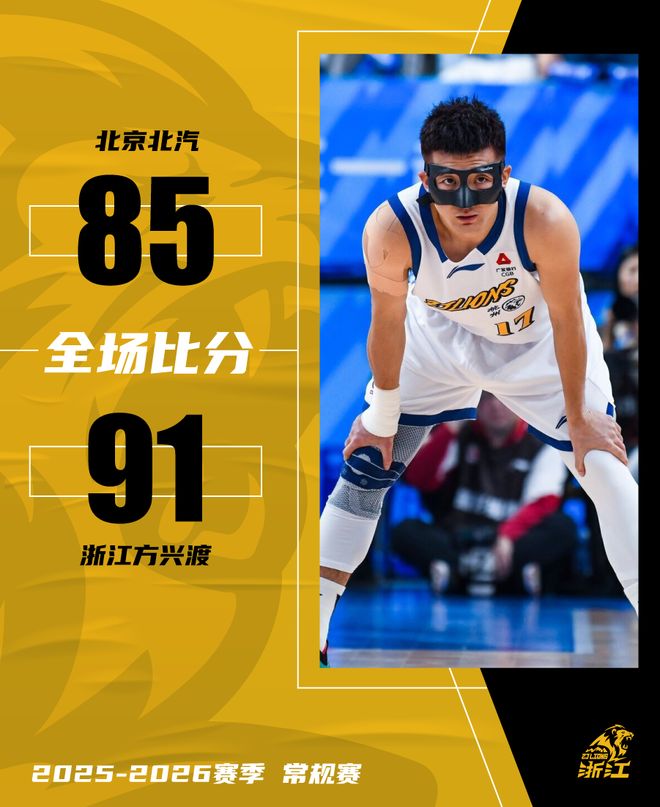 CBA常规赛第8轮,浙江方兴渡客场挑战北京北汽。开局浙江方兴渡打出8-2开局,随后对手连续追击,在第二节一度完成反超。下半场两队打得难解难分,双方互有对攻。关键时刻,布朗个人连得8分,为浙江方兴渡稳住胜局。最终浙江方兴渡以 91-85 战胜北京北汽,在终结对手7连胜的同时,收获6连胜!