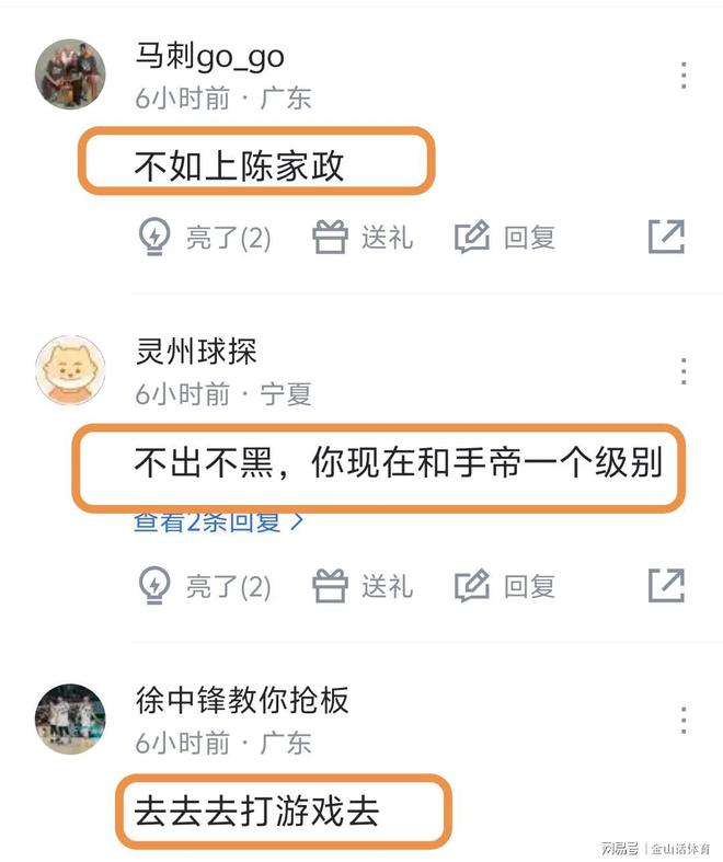 胡明轩糟糕的表现,赛后也遭到网友一致诟病。“大哥你干什么工作的?”;“胡明轩三打一不进,再一个放空三分没进,原地打转丢球…能看到这样的绝杀,小胡得上桌”;“第四节没你浙江不敢动筷子”;“态度是真不行啊轩哥”;“有伤就养好再回来,别拖累球队了,求求了”;“数据不是问题,场上处理球,真的连新秀都不如,怎么回事啊队长”;“不如上陈家政”;“不吹不黑,你现在和手帝一个级别”;“去去去打游戏去”……