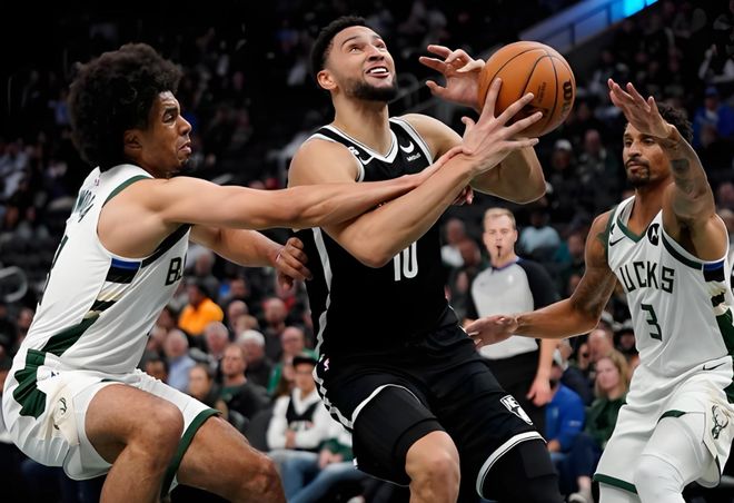 同样是曾面临投篮短板的球星,字母哥的转型之路与西蒙斯形成了鲜明对比。字母哥生涯前四年三分命中率仅 27%,但他通过系统性训练,不仅将三分命中率稳定在34%左右,还开发出了背身单打和稳定的近框投篮技术,夺冠赛季正是靠着这些进化后的技能,带领雄鹿击败太阳捧起总冠军奖杯。反观西蒙斯,别说三分球了,他的中投占比仅为3.7%,在进攻端,他的存在常常让球队陷入 “4 打 5” 的被动局面 —— 对手会放心地放空他,将防守注意力集中在其他四名队友身上。数据不会说谎:当西蒙斯在场时,他所在球队的三分占比会下降 8.6%,进攻效率也会下降4.2分。在追求空间和效率的现代篮球体系里,西蒙斯的进攻特点,已然成为了 “战术毒药”。