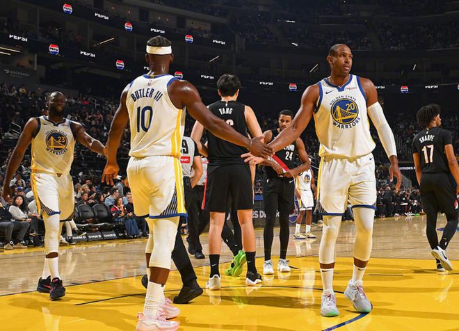 着实有点尴尬了,这两场比赛的共同点是,勇士后场篮板保护极差。就举一个例子,和开拓者一战,格林+霍福德一共抢到3个篮板球,开拓者首发中锋克林根,打了11分钟,拿到6个前场篮板。开拓者可不是森林狼、快船、雷霆、火箭这些一线豪门,那意味着勇士新赛季护框下限只会更低!科尔面临两难选择,拿上霍福德,他的体能不足以支撑首发的出场标准,只能是伪首发角色。但除了四位老人之外(霍福德39岁+库里37岁+巴特勒36岁+格林35岁),最后一个名额该属于谁?打湖人表现最好的穆迪,打开拓者在场输10分。
