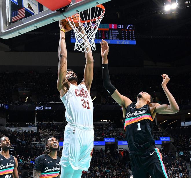 骑士的阿伦表现出色,骑士客场挑战马刺,骑士少了斯特鲁斯,马刺主力俱在,马刺上半场占据上风,半场战罢领先6分,下半场骑士完胜马刺,最终骑士以12分优势拿下比赛。阿伦打了28分钟,21中11,7罚5中,得到27分10板2断,面对文班他打出了强势表现。
