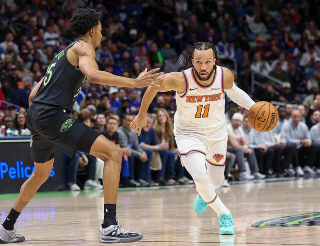 尼克斯的布伦森表现出色,尼克斯客场挑战鹈鹕,尼克斯少了哈特、米罗、沙梅特,鹈鹕少了穆雷、琼斯,鹈鹕长时间占据上风,三节战罢领先7分,第四节尼克斯单节赢了12分,最终尼克斯以5分优势拿下比赛。布伦森打了36分钟,23中10(三分10中5),3罚3中,得到28分3板10助。