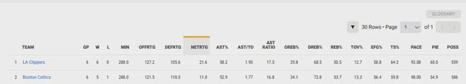 过去6场比赛,快船是联盟断档领先的最佳球队,最靠近他们的球队是他们下一场的对手凯尔特人,两队百回合净胜分差了10+。
