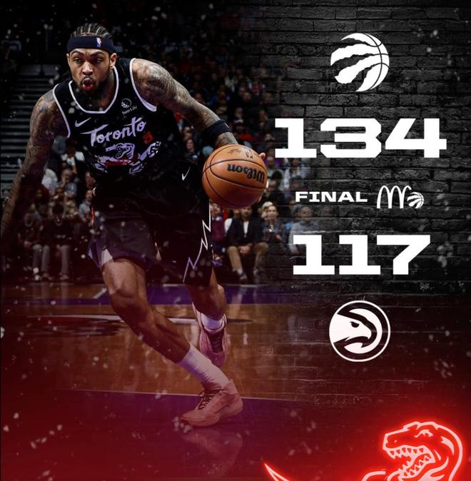 北京时间1月4日,NBA常规赛继续展开,猛龙主场134-117轻取老鹰。