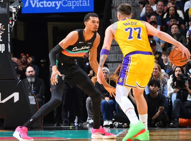 次节回来,斯玛特调高弧线超级高抛,仍旧被文班亚马暴跳没收,这还怎么打?卡特-布莱恩特突破抛投擦板命中,马刺领先到7分。东契奇连续造犯规罚球命中,随后送出本场第7次助攻,助力拉拉维亚连中两记三分,湖人打出一波11-0反超马刺4分。东契奇己方底线拿球,就遭遇马刺双人包夹,尚帕尼冲击篮筐裁判吹海斯犯规,雷迪克果断挑战,最终成功改判。凯尔登勾手命中后,再强突篮下打成2+1,马刺重新取得领先优势。东契奇传球失误,凯尔登反击追身三分还能还能投进,近期状态真是好,半场战罢,马刺48-43领先湖人5分。