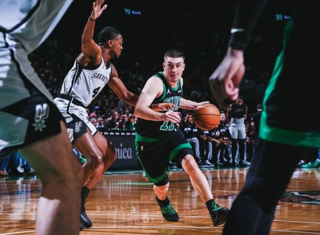 纵观全场比赛,有三个直观感受。第一,不太理解凯尔特人在自家主场,全场比赛只拿到4次罚球,其实马刺犯规不算多,凯尔特人也是一支非常依赖三分投射的球队,但包括布朗和怀特在内,其实对内线杀伤力都不太够,三分手感会有起伏,布朗有中距离,但被马刺整个防守体系给逼出效率最高的区域,他们打得很乱。特别是衔接段,确实是到了无人可用的地步。第二,马刺的主帅米奇是真“大胆”。把官方MVP前五的文班亚马,就放在替补席,12月份复出时就是如此。
