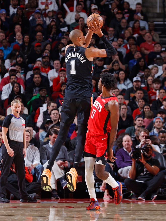 末节,杜兰特防文班亚马险些完成抢断,但文班亚马也被防了一个不沾筐,火箭是一波9-0。杜兰特看到谢泼德的表现太出色,他开始让渡球权。文班亚马也防下了杜兰特的三分球,随后文班亚马连续投丢两个三分球马刺被逆转了,垃圾时间文班亚马补扣一个,这是他下半场唯一一个运动战。