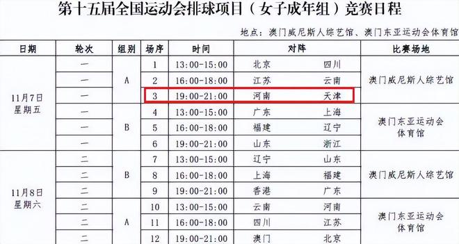 - 全运会女排比赛详细赛程在近日出炉,第一天比赛就迎来重头戏。卫冕冠军天津女排将和朱婷领军的河南女排交手。...发表于: 10-12 12:20