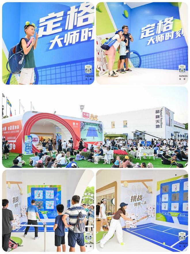 大师赛现场,以网球拍为灵感打造的光明致优展台,俨然成为全场焦点,创意展台设计与新颖趣味互动吸引众多观赛者驻足。