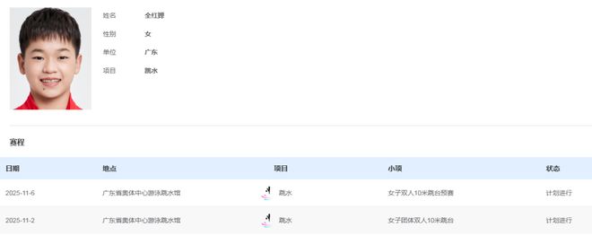新华社记者1日晚向广东跳水队领队确认,全红婵确定退出女子10米跳台单人项目,将于11月2日参加女子团体双人10米跳台项目,11月6日出战女子双人10米跳台项目。