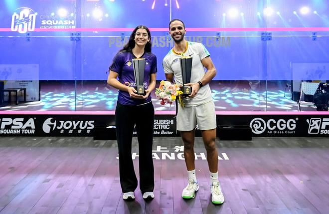 上个周末,2025中国壁球公开赛在久事体育场馆仙霞网球中心落下帷幕。6天时间,这场赛事不仅见证了埃及选手穆罕默德·阿布埃尔加(Mohamed Abouelghar)和阿米娜·奥尔菲(Amina Orfi)捧起男女单打的金杯,而且将世界顶级运动员带进了上海的弄堂和商圈,让更多人开始了解甚至是亲身体验壁球的魅力。