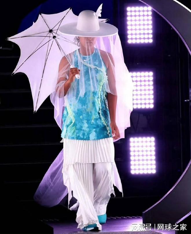 有网友调侃道:“大坂直美澳网造型太绝了!一身‘婚纱战袍’+‘蚊帐伞’,仿佛从仙侠剧里走出来的‘日本白娘子’,这出场仪式感直接拉满,网球赛场秒变时装秀场!”