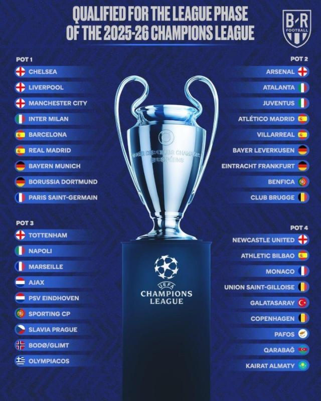 欧冠36强全部确认,下赛季欧冠预计分档情况也随之出炉。25-26赛季欧冠分档↓