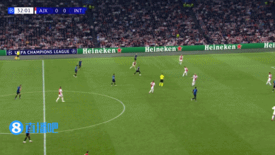 上半场伤停补时3分钟,半场结束,国米暂1-0阿贾克斯。