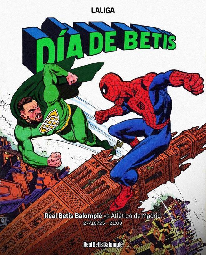 雷速体育10月27日讯 今晚凌晨西甲联赛第10轮,贝蒂斯主场迎战马德里竞技。西甲官方发布两队赛前海报,其中蜘蛛侠大战绿灯侠。