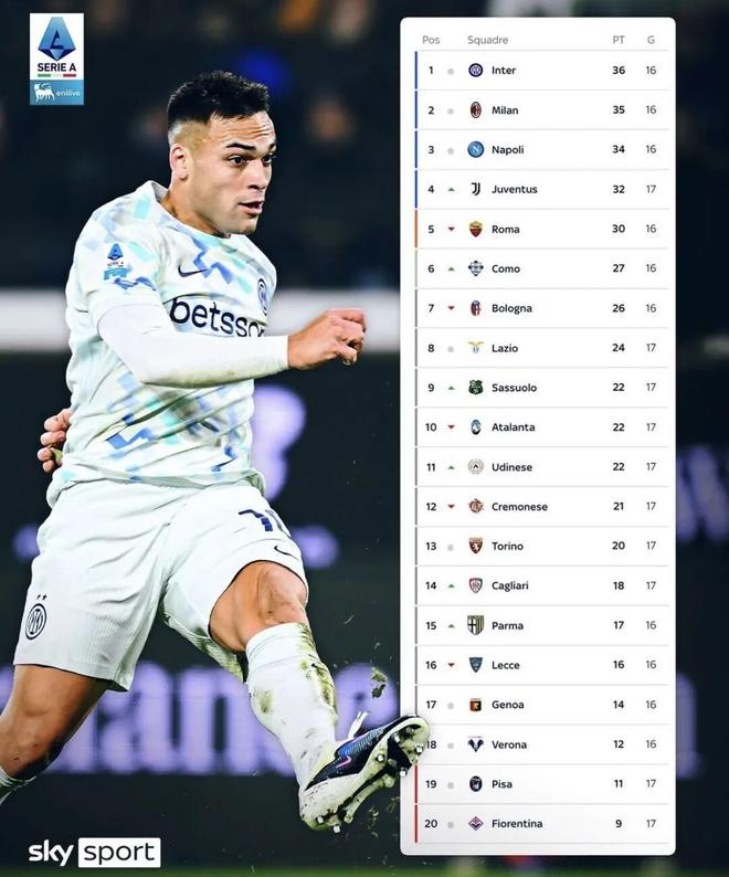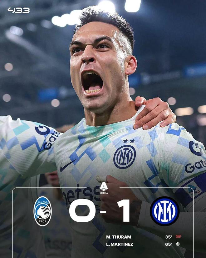 最终国际米兰客场1-0战胜亚特兰大,重登意甲积分榜榜首。