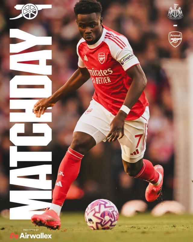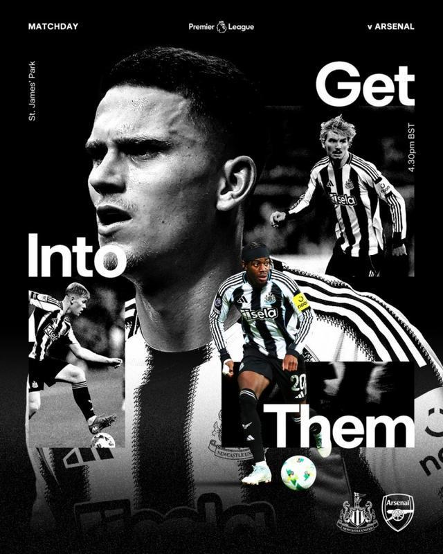 9月28日讯 北京时间今天23点30分,阿森纳将在英超第6轮比赛中客场对阵纽卡。阿森纳、纽卡发布了为此役制作的海报,阿森纳的海报中萨卡单人出镜,纽卡的海报则是博特曼、伊兰加、