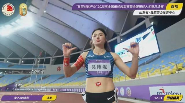 100米栏四连冠!全国田径冠军赛:吴艳妮12秒90夺冠 第二名13秒22