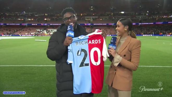 此前曾透露自己私下也支持阿森纳的曼城旧将理查兹在节目直播中收到了一件阿森纳与曼城的缝合球衣。当理查兹站在镜头前时,CBS体育表示给他准备了一份特别的礼物。理查兹随后