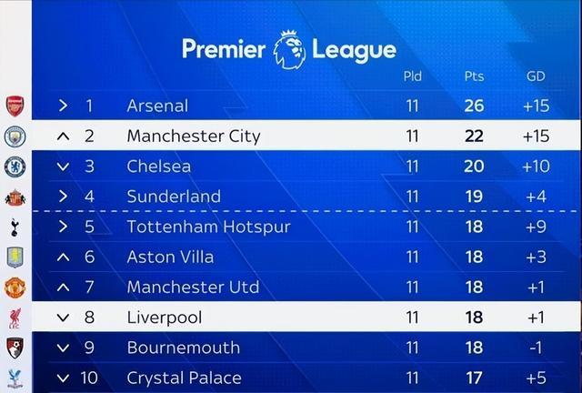 全场战罢,曼城主场3-0大胜利物浦,收获各项赛事4连胜,11轮积22分位列英超第2,距离榜首球队阿森纳还差4分!