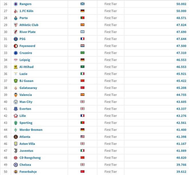 40.曼城 场均43605名观众