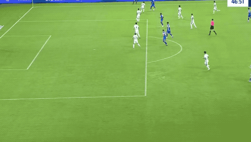 下半场开始只有1分钟,阿苏埃右路连续踩到车后突然传球,刘诚宇停球射门一气呵成,帮助申花锁定胜局。