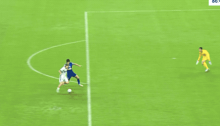 第77分钟,申花两名替补连线,于汉超做饼,杨泽翔插上,停球射门足够舒服。