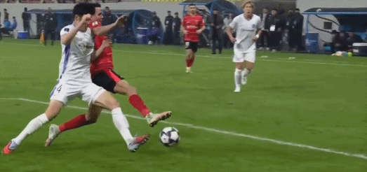 比赛的第50分钟,周定洋禁区内带球突破,被荒木隼人撞倒,主裁判第一时间判罚点球。随后,视频助理裁判介入判罚,并且要求主裁判回看慢镜头。